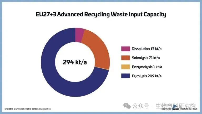 该报告指出,仅在欧盟27个成员国及3个其他国家/地区,就有70多家正在运营或计划建设的相关企业,其中比较著名的有德国的LYB溶剂回收公司、法国的Carbios公司以及比利时的Blue Alp公司。目前,热解和溶剂分解技术是应用最广泛的技术,但生化处理及物理处理技术的发展速度也相当迅速。