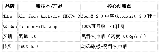 安踏氮科技3.0(密度低至0.08g/cm³,成本降低20%)。
