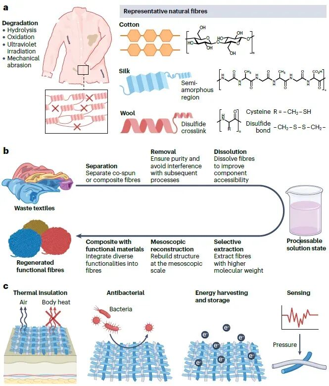 鉴于此,南洋理工大学吴荣辉教授团队近日在《Nature Reviews Bioengineering》发表评论文章”Upcycling textile waste into sustainable functional fibres”,系统阐述了将纺织废料升级再造为高价值功能材料的前沿技术与无限可能,为可持续纺织产业指明方向。